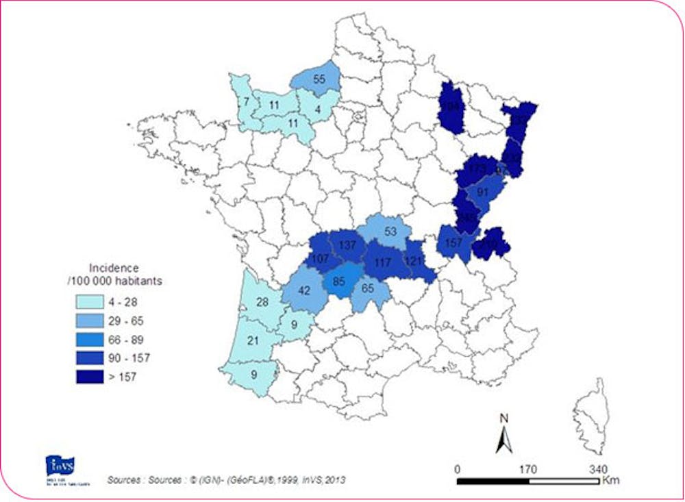 Maladie de Lyme 1 | Cinq sur Cinq Tique et maladie de Lyme: une carte indicative des départements .